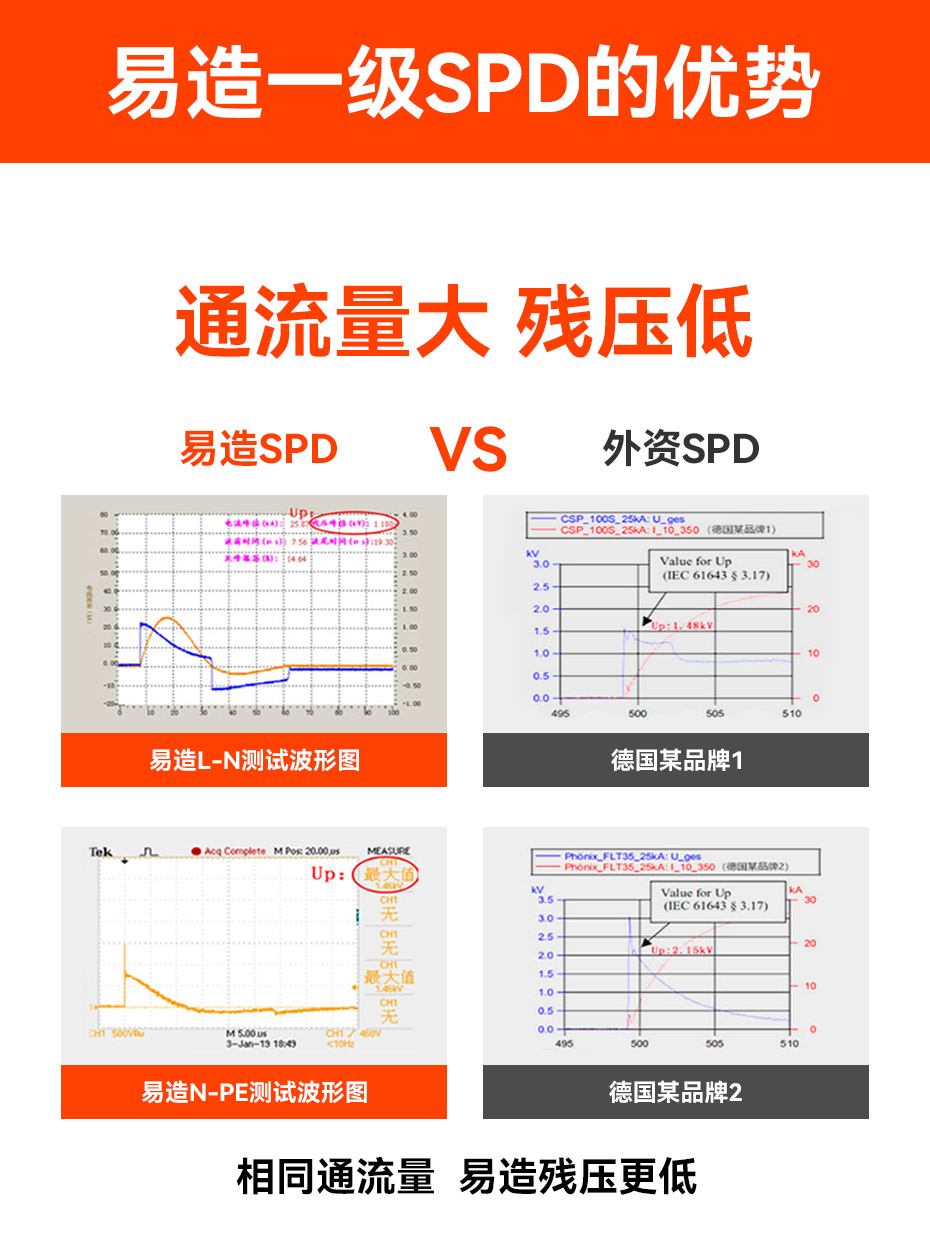 易造T1級(jí)浪涌保護(hù)器12.5kA-100kA規(guī)格型號(hào)齊全,嚴(yán)格執(zhí)行國(guó)內(nèi)國(guó)際各項(xiàng)標(biāo)準(zhǔn),獲得了UL、CSA、TUV、CE、CQC等多項(xiàng)權(quán)威認(rèn)證,確保了易造SPD在各種環(huán)境下的適用性和可靠性,可廣泛應(yīng)用于軌道交通、石油化工、港口碼頭、風(fēng)力發(fā)電、儲(chǔ)能系統(tǒng)、冶金、機(jī)場(chǎng)、醫(yī)院、煙草、市政等行業(yè)領(lǐng)域。