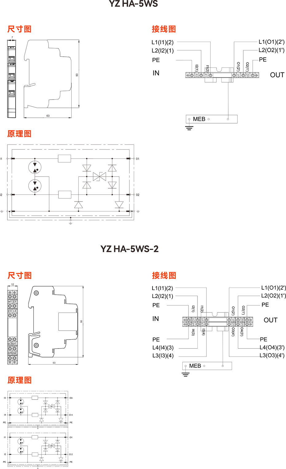 模塊化信號(hào)浪涌保護(hù)器YZ HA-5WS