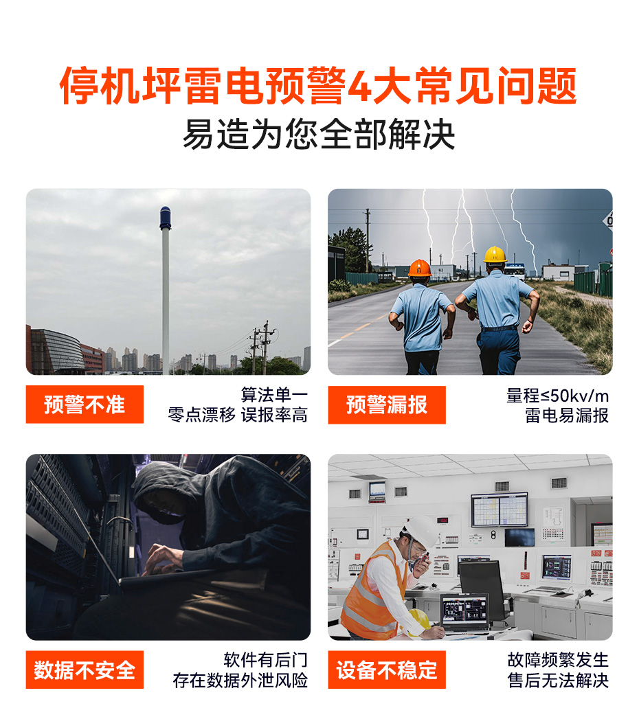 易造場(chǎng)磨式雷電預(yù)警系統(tǒng),采用新一代雙算法預(yù)警技術(shù),預(yù)警準(zhǔn)確無(wú)漏報(bào),具備良好的抗干擾和耐惡劣環(huán)境能力,為停機(jī)坪的主動(dòng)防雷提供持續(xù)、準(zhǔn)確的雷電預(yù)警服務(wù),適用于高層建筑停機(jī)坪、醫(yī)院停機(jī)坪、機(jī)場(chǎng)、航空航天等領(lǐng)域。
