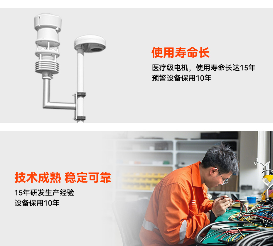 易造景區(qū)雷電預(yù)警系統(tǒng),可實(shí)時監(jiān)測景區(qū)20公里范圍內(nèi)的雷電活動,并可提前30分鐘發(fā)出黃橙紅三級雷電警報,及時通知景區(qū)工作人員采取防雷應(yīng)急預(yù)案,停止索道、纜車運(yùn)行,引導(dǎo)疏散游客進(jìn)入裝設(shè)防雷裝置的建筑物內(nèi),確保游客的生命安全。IP65預(yù)警探頭具有WF2防腐等級,可在各種環(huán)境條件下長期穩(wěn)定運(yùn)行,使用壽命長達(dá)10年以上。