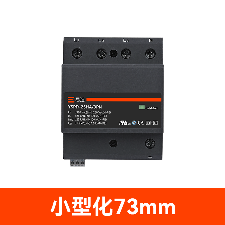 易造1+2級25kA復合型浪涌保護器安全無續(xù)流、體積小每相僅一個模數(shù)寬(18mm)、高通流低Up,帶故障指示、遠程告警功能、維護方便,最大持續(xù)工作電壓高達760Vac,可直接保護終端設備。